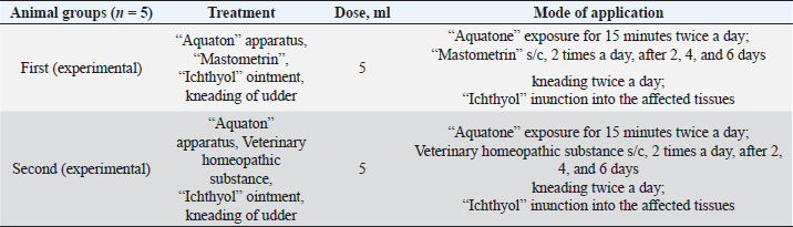 Open Vet. J.. 2023; 13(2): 193-201 Open Veterinary Journal, (2023), Vol. 13(2): 193–201 Original Research Development of unconventional treatments for mastitis in dairy cattleAigerim A. Kukeeva1*, Talgat Zh. Abdrakhmanov1, Aibar N. Akhmetov2, Askar A. Terklibaev1 and Kanat M. Kamsaev11Department of Veterinary Medicine, Faculty of Veterinary Sciences and Animal Husbandry, Saken Seifullin Kazakh Agro Technical University, Astana, Republic of Kazakhstan 2Department of Veterinary Sanitation, Faculty of Veterinary Sciences and Animal Husbandry, Saken Seifullin Kazakh Agro Technical University, Astana, Republic of Kazakhstan *Corresponding Author: Aigerim A. Kukeeva. Department of Veterinary Medicine, Faculty of Veterinary Sciences and Animal Husbandry, Saken Seifullin Kazakh Agro Technical University, Astana, Republic of Kazakhstan. Email: ai.kukeeva [at] gmail.com Submitted: 13/10/2022 Accepted: 16/01/2023 Published: 13/02/2023 AbstractBackground: The increase in the intensity of livestock industries, by improving the technology of animal product manufacturing, largely depends on the correct organization of herd reproduction and the intensity of using the biological capabilities of the animal organism. Various diseases, including such common diseases as mastitis, complicate the successful reproduction and growth of enterprise productivity. The widespread use of antibiotic-containing drugs for the treatment of mastitis creates a number of inevitable consequences for the body. The relevance of the study is due to the fact that the residual content of antibiotics in the collected milk after the course of treatment poses a serious danger to human health and reduces the quality of dairy products obtained from such milk. Aim: The authors set the task of developing a new, antibiotic-free method of treating bovine mastitis. This paper is devoted to the problem of improving methods of treating the subclinical mastitis in dairy cattle by alternative methods during the interlactation period. Methods: The leading method for the study of this problem is an experimental method that allows to develop and test a veterinary homeopathic substance for the treatment of subclinical mastitis in cows during the interlactation period. Results: This paper presents materials on the typification of microflora in the milk of cows with subclinical mastitis and the effectiveness of a veterinary homeopathic substance developed by the authors. The use of the veterinary homeopathic substance provided a high therapeutic effect, and did not cause side effects and complications in cows. Conclusion: The resulting veterinary substance was tested and introduced into the “Izhevskiy” natural complex of Akmola region as a new alternative method of treating subclinical mastitis in cows. Based on this substance, a drug for the treatment of mastitis will be developed and proposed for production. Keywords: Dairy cattle, Mastitis, Unconventional therapies, Homeopathic substance, Pharmacotherapeutic effect. IntroductionBovine mastitis is the most common disease affecting dairy farms around the world. The economic losses associated with mastitis derive mainly from reduced milk production and, to a lesser extent, culling of lactating animals, veterinary costs, and milk quality penalties (Mylostyvyi et al., 2021a,b; Huilca-Ibarra et al., 2022). Mastitis is caused by a wide range of pathogenic agents that penetrate the lacteous glands and multiply in the udder. Often the cause of mastitis is a small group of bacteria, including Staphylococci, Streptococcus uberis, mycoplasmas, and Escherichia coli Carrillo-Casas and Miranda-Morales, 2012). Bovine mastitis is recognized as the most common and costly disease affecting dairy herds. The disease results in huge financial losses for the dairy industry as a result of lower yields and milk quality, death and culling of affected cows, and associated treatment costs. The disease occurs as a result of the invasion of the lacteous glands by pathogenic bacteria, followed by their reproduction in the mammary tissues (Mushtaq et al., 2017). The clinical symptoms of the cows with mastitis (Libisch et al., 2022):