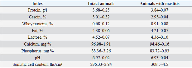 Table 10. Physicochemical parameters of milk in healthy cows and cows with mastitis.