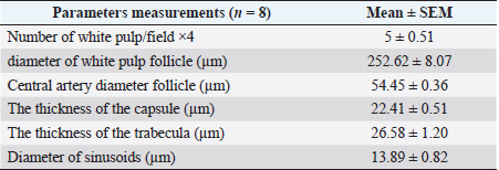 Table 2. The histomorphometric measurements of the spleen in the adult golden hamster.