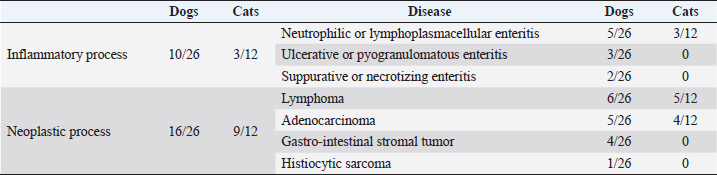 Table 3. Histopathological results in dogs and cats.
