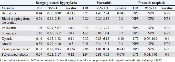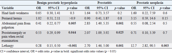 Keywords: Canine, Clinical signs, Odds ratio, Prostatic diseases.