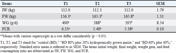Table 5. Hydroponic maize feeding effects on the growth performance of buffalo calves.