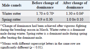 Table 3. The mean cortisol levels (ug%) with a change of dominance(1) in male camels (n=10).