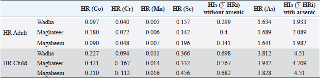 Table 8. The HR and HIs are due to ingestion of camel meat from different breeds.