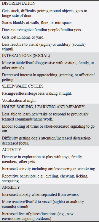 To examine the change in disorientation; interactions-social; sleep/wake cycle; house soiling, learning, and memory; activity; and anxiety (DISHAA) scores, we performed a Friedman’s test with post-hoc pairwise comparisons using the Dunn-Conover method.