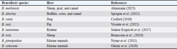 AbstractOne zoonotic infectious animal disease is brucellosis. The bacteria that cause brucellosis belong to the genus Brucella. Numerous animal and human species are affected by brucellosis, with an estimated 500,000 human cases recorded annually worldwide. The occurrence of new areas of infection and the resurgence of infection in already infected areas indicate how dynamically brucellosis is distributed throughout different geographic regions. Bacteria originate from the blood and are found in the reticuloendothelial system, the liver, the spleen, and numerous other locations, including the joints, kidneys, heart, and genital tract. Diagnosis of this disease can be done by bacterial isolation, molecular tests, modified acid-fast stain, rose bengal test (RBT), milk ring test, complement fixation test, enzyme-linked immunosorbent assay, and serum agglutination test. The primary sign of a Brucella abortus infection is infertility, which can result in abortion and the birth of a frail fetus that may go on to infect other animals. In humans, the main symptoms are acute febrile illness, with or without localization signs, and chronic infection. Female cattle have a greater risk of contracting Brucella disease. Human populations at high risk of contracting brucellosis include those who care for cattle, veterinarians, slaughterhouse employees, and butchers. Antibiotic treatment of brucellosis is often unsuccessful due to the intracellular survival of Brucella and its adaptability in macrophages. A “one health” strategy is necessary to control illnesses like brucellosis. Keywords: Brucellosis, Zoonosis, Illness, Brucella abortus, Public health. IntroductionOne zoonotic infectious animal disease is brucellosis. This illness affects financial losses significantly and is global in scope (Moriyón et al., 2023). Numerous animal and human species are affected by the disease, with an estimated 500,000 human cases recorded annually worldwide (Zhou et al., 2020). Most developing nations have an endemic form of this illness, which has a devastating financial impact on the cattle sector, particularly on small-scale farmers (Lokamar et al., 2020). The World Health Organization (WHO) has designated this disease as one of the world’s most important “neglected zoonotic diseases” due to the impact it exerts, especially on low-income nations (Franc et al., 2018). Brucellosis is thought to have existed for a very long time; new evidence from Egyptian skeletons indicates that the disease has been around since at least 750 BC (Bamaiyi, 2016). Brucellosis is also known by other names such as Malta fever, Gibraltar fever, Bang disease, Crimean fever, Mediterranean fever, infectious abortion, undulant fever, stone fever, and intermittent fever (Brangsch et al., 2023). The Gram-negative coccobacilli of the genus Brucella, which infects practically all pets, cattle, and human species, are the cause of this bacterial infection (Khan and Zahoor, 2018). A number of species of Brucella, including Brucella melitensis, Brucella ovis, Brucella pinnipediae, Brucella suis, Brucella neotomae, Brucella cetaceae, Brucella abortus, and Brucella canis, are responsible for this illness (Pfefer et al., 2018). In essence, brucellosis is a sexually transmitted illness that primarily affects the female and male reproductive systems, particularly the uterus during pregnancy (Li et al., 2020). Most Brucella species are stimulated to grow by the allantoic factor. These factors include erythritol, possibly steroid hormones, and other substances (Khurana et al., 2021). In the animal agriculture industry, brucellosis results in significant financial losses as well as issues with public health (Tulu, 2022). This causes economic losses due to reproductive failure through infertility, failure to birth calves, reduced meat and milk production, as well as culling and banning international trade (Singh et al., 2015). Clinical manifestations of brucellosis include orchitis and epididymitis in bulls, and abortion and retained fetal membranes in cows (Megid et al., 2010). Public health is significantly impacted by brucellosis in people, despite the fact that many nations have had success with initiatives to eradicate and control animals (Lai et al., 2021). In people, this illness usually manifests as a fever with a variety of clinical signs and symptoms and an unclear origin (Shi et al., 2021). Patients frequently experience severe localized side effects such neurobrucellosis, endocarditis, or spondylitis (Zhang et al., 2021). Because direct or indirect contact with infected animals or products is the primary cause of brucellosis in people, the focus of prevention should be on removing said contact. A clear route to eliminating animal-borne illness is sometimes out of reach for the financial and human resources of many poor nations (Godfroid, 2017). There are 10 times more unreported cases of clinically manifested brucellosis (Sun et al., 2021). Thus, this is one of the most important issues in public health. All age groups and genders are susceptible to brucellosis, and controlling the disease in humans depends on reducing animal infection through immunization and treatment initiatives (Yuan et al., 2020). The one health approach promotes local, national, and international multidisciplinary efforts to achieve optimal levels of health and collaboration between various scientific disciplines to overcome complex health problems (Ghanbari et al., 2020). It is based on the integration of human and animal health, plants, and ecosystems. Thus, it is critical to comprehend the risks that brucellosis poses to both human and animal health. This review explains the disease brucellosis with a special focus on the etiology, history, epidemiology, pathogenesis, diagnosis, clinical symptoms, transmission, risk factors, public health importance, treatment, control, and biotherosis of brucellosis. EtiologyThe bacteria that cause brucellosis belong to the g