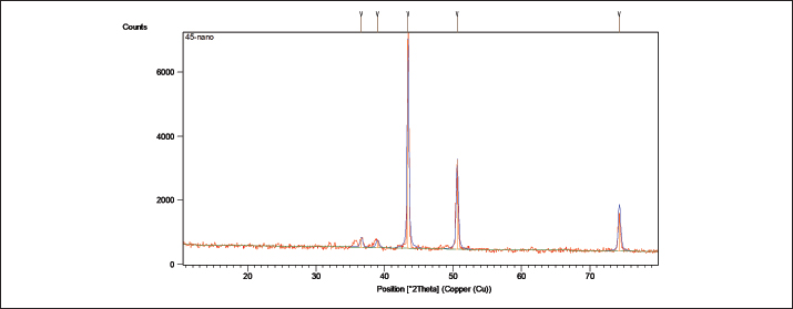 Fig. 3. Pattern of XRD for selenium nanoparticles, prepared in sodium selenite solution with P. aeruginosa extract. Table 1. The effect of SeNP, administered on lipid profile (cholesterol, triglyceride, HDL, LDL, and VLDL).