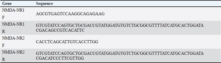 Fig. S1. Schematic diagram of the experimental protocol and injections. Table 1. Measurement and determination of NMDA-NR1 and NMDA-NR2 gene expression levels using specific primers.