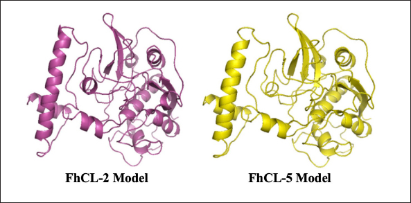 Fig. 1. Results of FhCL-2 and FhCL-5 modeling of the template (pdb id. 2OX6).