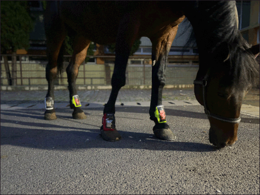 Fig. 1. The Lameness detector 0.1 system, fitted with adjustable straps to the dorsal aspect of a horse’s pasterns.