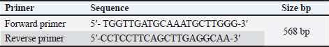 AbstractBackground: The Canine parvovirus type 2 is an acute viral disease in puppies and is considered a worldwide disease. Aim: This study was performed to identify the Canine parvovirus (CPV) throughout 2022 and 2023 in Iraq. The novelty of this study was to isolate this virus in two types of cell cultures (diploid and fibroblast cell cultures) and confirm the isolated virus via PCR technique. Methods: Sixty fecal samples were taken from suspected infected dogs in the Baghdad Governorates who were clinically sick and thought to have CPV. The first performed qualitative antigen detection on the samples with a rapid test, then the positive samples were propagated on the feline kidney (FK) and embryonated chicken fibroblast cells and finally identified the isolated virus on six randomly selected samples by amplifying the VP2 gene with a conventional polymerase chain reaction. Results: Rapid tests found 50% of fecal swabs as positive results. Additionally, the results of the cytopathic effect (CPE) at the second and third passages on chicken embryo and FK cell cultures revealed rounder and more detached cells. Furthermore, the isolated virus was confirmed through amplified the Vp2 gene of the virus by polymerase chain reaction. Conclusion: The focus of this study was to isolate of parvovirus that causes diarrhea in puppies, which is quite frequent in Iraq. The virus was isolated using both primary and secondary cell cultures. The solitary virus causes cells to become more differentiated and rounded due to CPEs. The virus was confirmed to be real using a polymerase chain reaction experiment. This study also suggests doing more epidemiological research and sequencing analysis to determine the prevalence of CPV serotypes in Iraq and the efficacy of trade in and locally made vaccinations in preventing against viral infection. Keywords: Parvovirus, Isolation, PCR, Pups, Iraq. IntroductionCanine parvovirus type 2 (CPV2) is a virus that affects the dog population globally, mainly in puppies. This disease is considered acute hemorrhagic enteritis and its clinical signs include diarrhea, vomiting, myocarditis, and immunosuppression. The CPV2 virus is encircled in an icosahedral capsid structure and has a very small diameter of about 25 nm (Ahmed et al., 2018). CPV2 is categorized under the taxonomic classification of the family Parvoviridae, more specifically the subfamily Parvovirinae, genus protoparvovirus, and carnivore protoparvovirus 1 species (Cotmore et al., 2019). The genetic material of this virus is a single stranded, linear DNA and has a length of about 5,200 nucleotides. The genome encodes for four different proteins. Two structural proteins, (VP1 and VP2), VP2 is the main protective antigen and forms the viral capsid. Two non-structural proteins (NSs) are (NS1 and NS2), the NS1 which is important to viral replication, and NS2, which is essential for the viral capsid to assemble (Nur-Farahiyah et al., 2021). This virus was first recognized in the 1970s due to spreading among dogs. It was also called CPV2 since a similar one, CPV1, is seen in dogs (Chen et al., 2021). Moreover, the genetic variations in the virus during the 1980s, the original CPV2 virus gave two distinct antigenic subtypes (CPV2a and CPV2b). Additionally, the first of a new antigenic subtype, CPV2c, in 2000 led to the phase out of the prototype CPV2 in Italy (Clark et al., 2018). As well as, several viruses (RNA and DNA viruses) were diagnosed using PCR (Ali et al., 2015; Allawe, 2016; Mhemid, 2016; Jumaa et al., 2019, 2020, and 2021; Ahmed, 2020; Taha and Alhankawe, 2023; Jbr and Jumaa, 2024). This study aims to isolate the circulating Canine parvovirus (CPV) in Baghdad (Iraq) by isolation of this virus on several types of cell cultures and confirm the isolated virus using the PCR method. Materials and MethodsSamples collection and its preparationSixty fecal swabs were collected from suspected infected dogs in Baghdad governorates through 2022. Between the ages of (2–6) months, these dogs showed moderate to severe gastrointestinal symptoms, including (vomiting, lethargy, in appetence, diarrhea, and dehydration). These samples were prepared according to Soliman et al. (2018). Each fecal swab was put in a container with labels that had phosphate-buffered saline (PBS) and a (10%) antibiotic solution. After that, after two cycles of freezing and thawing, the samples were centrifuged for (10 minutes) at 2,000 relative centrifugal force. Finally, the supernatant was separated and kept at (−80°C) until it was needed for viral isolation and molecular identification. Rapid test for viral detectionThis kit is a commercial Kit (Rapid test kit, BIONOTE) and a diagnostic tool that can identify the presence of CPV antigen in fecal swabs. Viral isolation on feline kidney (FK) and embryonated chicken fibroblast (ECF) cellsFirst, these cells were grown in minimal essential medium (MEM) supplemented with fetal calf serum (10%) at 37°C in an environment of CO2 (5%) until they reached full coverage as monolayers. Afterward, the growth medium was withdrawn from the monolayers in a 25 cm2 cell culture flask and replaced with (0.1 ml) of viral inoculum. Then, by concurrently inoculating similar flasks with an equivalent volume of sterile PBS, negative culture controls were created. Subsequently, for 1 hour, the inoculum was allowed to absorb at (37°C) in temperature. After an hour, the MEM with 1% fetal calf serum was added to every monolayer including the control culture (negative) and infected culture, and incubated at 37°C. Finally, the monolayer was diagnosed using an inverted microscope every day to look for the appearance of cytopathic effects (CPEs) (Sharma et al., 2016; Kurucay et al., 2023). Extraction of DNAThe DNA Mini Kit (Promega USA) was used to extract DNA from samples according to the manufacturer’s instructions. The steps for extraction of DNA include, 200 μl of the sample suspension was incubated for ten minutes