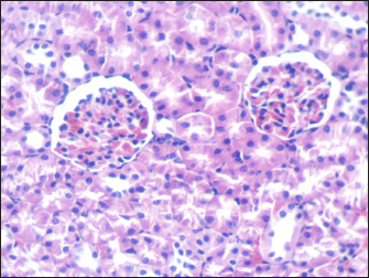 Fig. 5. Section of mouse kidney of control group shows normal cellular appearance (H and E, ×400).