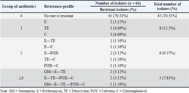 Table 4. Isolates of S. aureus with an MDR profile.