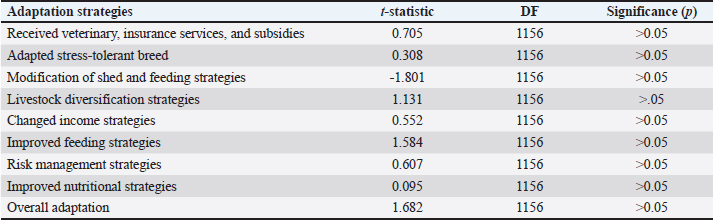 Fig. 2. Female perception of the impact of climate change on livestock. Table 4. Independent sample t-test showing the gender differences in adaptation strategies among farmers.