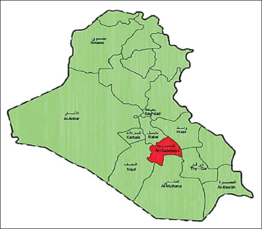 Fig. 1. Field of study (Ghawi, 2018). Serological investigation of N. caninumEnzyme-linked immunosorbent assay (ELISA) Indirect ELISA; Screen® N. caninum Competition (ID Co., Grabels, France), had been executed on 200 gathered sera samples according to the instructions of the kit’s manufacturer (ID.VET/France). At 450 nm, the microtiter plate was read, and the software saved the optical densities for further analysis. The calculations were performed according to the following equation: