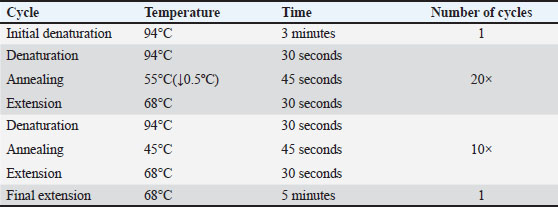 Table 2. PCR conditions for amplification of the ChIL-4 gene.