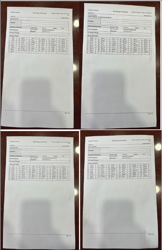 AbstractBackground: This research identified Streptococci spp. depending on culture, biochemistry, the Visual Information Technologies (VITEK) technique, ability to produce biofilms, and antibiotic resistance. Aim: The goal of this study was to perform microbiological procedures to evaluate the qualitative qualities of mozzarella cheese against infective Streptococci using microbiological care. Methods: Sixty (60) mozzarella cheese samples were brought from diverse markets in Baghdad from October 2023 to December 2023 at the Zoonoses Research Unit and Veterinary Public Health Department, Veterinary Medicine College, University of Baghdad. Culture of samples on agar (MacConkey and blood) and aerobically incubated at 37°C for 48 hours. Gram staining purified colonies to notice Gram-positive cocci arranged in strings that were supposed to be Streptococcus species, and then sub cultured on nutrient agar for identification using the VITEK technique. The isolates were tested for their capacity to lyse human red blood cells by streaking blood agar and incubating at 37°C for 24 hours. Streptococcal isolates were streaked on a Congo-red medium. All isolates were inspected for antibiotic susceptibility using 15 common antibiotics via the disc diffusion method. Results: Isolates mozzarella cheese samples 8 (13.3%), these (eight) isolates include: (Streptococcus thoraltensis, Streptococcus sanguinis, Streptococcus cremoris, and Streptococcus alactolyticus. The susceptibility of S. thoraltensis, S. sanguinis, and S. alactolyticus was (26.6%), and S. cremoris (20%) to all antibiotics. Resistance of S. thoraltensis was (53%), S. sanguinis, S. alactolyticus were (66%), and S. cremoris was (73%) to all antibiotics. S. thoraltensis, S. cremoris, and S. alactolyticus were susceptible (75%) to Amikacin. S.sanguinis and S. cremoris were susceptible (50%) to Tigecycline. Streptococcus thoraltensis and S. alactolyticus were susceptible (50%) to Doxycycline. Streptococcus sanguinis and S. alactolyticus were susceptible (50%) to Ciprofloxacin. Streptococcus thoraltensis and S. sanguinis were susceptible (50%) to Azithromycin. Streptococcus sanguinis was susceptible (25%) to vancomycin. Streptococcus alactolyticus was susceptible (25%) to Streptomycin. Streptococcus thoraltensis was susceptible (25%) to Amoxicillin and Clavulanic acid. S. cremoris was susceptible (25%) to Penicillin. All isolates were 100% resistant to imipenem, lincomycin, meropenem, methicillin, and chloramphenicol. Conclusion: Analysis of mozzarella cheese samples identified four predominant Streptococcus species and their antibiotic activity. Keywords: Streptococci isolates, Streptococcus spp., Antibiotics susceptible, Mozzarella cheese, Unpasteurized milk. IntroductionThe genus Streptococcus contains both commensal and harmful species. It has experienced tremendous extension and revision as a result of the speedy development of technologies for molecular identification and microbial phenotyping (Lu et al., 2016; Tian et al 2019). Streptococcus has about 100 recognized species, numerous of which are nurses or symbiodinium in people and animals (Foster et al., 2020). Antibiotic resistance is transformed from beneficial and commensal bacteria to pathogenic bacteria through the docximportant role of the food chain (Flórez and Mayo, 2017). Streptococci are widely spread in humans and animals, and they can cause various diseases (Dhanda et al., 2013). They are present in the oral and intestinal regions of animals and humans, as well as in raw milk, dairy products, and plant material (Tsakalidou et al., 1998). The source of the milk (sheep or cows), method of production (unpasteurized milk and pasteurized or aging period), production, conditions, and other factors affect the microorganisms in the cheese (Verraes et al., 2014; Yao et al., 2022). Dairy products, due to their short shelf life, serve as an ideal growth medium for a diverse array of microorganisms (Ledenbach and Marshall, 2009; Garnier et al., 2017; Rauh and Xiao, 2022). Therefore, it is important to monitor the microbiological quality of dairy (products), especially the whole viable count and concentration of Escherichia coli bacteria, as they are indicators of the sanitary condition of these (products) (Ryu et al., 2012; Pal et al., 2016). The concentration of lactic acid bacteria (LAB) in dairy products such as mozzarella cheese, which are the main components of the starter culture, should be monitored (Mazzoli et al., 2014; Blaya et al., 2018). Fermented products enhance the flavor and consistency of cheese while preventing food spoilage bacteria by producing substances that hinder their growth (Najim, 2010; Algboory et al., 2017; Hussein and Jabbar, 2020). Cheese makers must frequently observe the concentrations of LAB and bacteria during the production of fresh cheese to ensure the quality and safety of their products (Losito et al., 2014). Antimicrobial resistance is a global problem (Watkins and Bonomo, 2016; Motaweq and Naher, 2017; Zhang et al., 2019). Antibiotic-resistant bacteria have been identified in various foods (Wang et al., 2012; De Jong et al., 2013). Devirgiliis et al. (2013), Gad et al. (2014), and Soares-Santos et al. (2015) detailed the factors that influence antibiotic resistance in bacteria associated with dairy products. They also highlighted the widespread distribution of antibiotic resistance genes among food bacteria, emphasizing their role as reservoirs of resistance genes (Marshall and Levy, 2011; Hu et al., 2013; Flayyih et al., 2016; Albanna and Al-Layla, 2020; Taher et al., 2020). In a study, infection with Streptococcus isolated from soft mozzarella cheese, and the importance of stopping the spreading of the epidemic by using molecular tools, first by detecting pathogenic microbes in food, which pose a health hazard to consumers (Hussaini et al., 2014; Mounam et al., 2023). Materials and MethodsThe research was conducted from October 2023 to Decemb