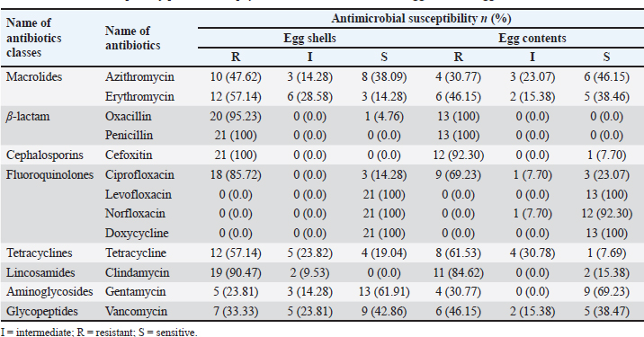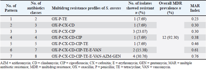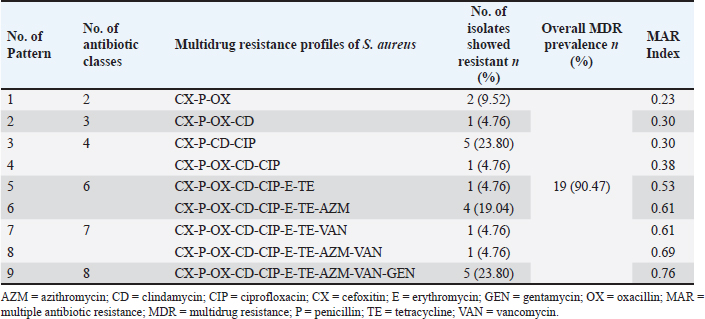 Table 10. Multidrug resistance profiles of Staphylococcus aureus isolated from table egg contents.