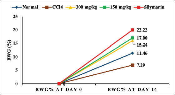 Fig. 1. Effect of S. nigrum extract on body weight gain (%) in the study groups. Table 3. Comparison of biochemical parameter levels (Mean ± SEM) in study groups.
