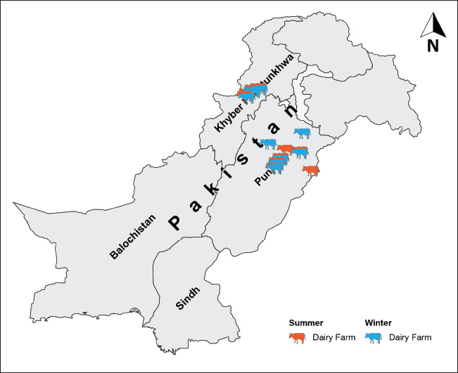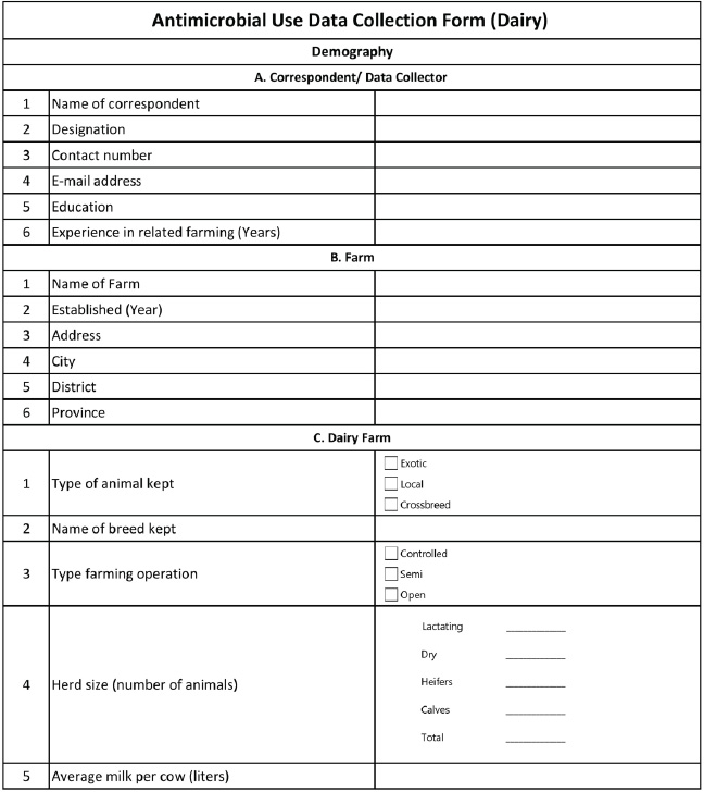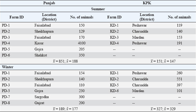 Open Vet. J.. 2025; 15(7): 3156-3176 Open Veterinary Journal, (2025), Vol. 15(7): 3156-3176 Research Article Quantification and trends of antimicrobial use in commercial adult dairy and calves during summer and winter in PakistanMuhammad Umair1,2, Muhammad Usman Zaheer3,4, Muhammad Farooq Tahir3,5, Rana Muhammad Abdullah1, Jabir Ali1, Muhammad Abubakar6, Riasat Wasee Ullah7,8, Muhammad Akram7, Javaria Alam3, Usman Talib9, Sami Ullah Khan Bahadur3 ,4, Qadeer Ahsan9 and Mashkoor Mohsin1*1Institute of Microbiology, University of Agriculture, Faisalabad, Pakistan 2Department of Biology, INEOS Oxford Institute for Antimicrobial Research, University of Oxford, Oxford, UK 3Fleming Fund Country Grant Pakistan, Health Security Partners, Washington, DC, USA 4Animal Population Health Institute, College of Veterinary Medicine and Biomedical Sciences, Colorado State University, Fort Collins, CO, USA 5Integral global, Atlanta, GA, USA 6National Veterinary Laboratory, MNFSR, Islamabad, Pakistan 7Livestock Wing, Ministry of National Food Security and Research, Islamabad, Pakistan 8Food and Agriculture Organization of the United Nations, Country Office, Islamabad, Pakistan 9Fleming Fund Country Grant Pakistan, DAI Pakistan Private Limited, Islamabad, Pakistan *Corresponding Author: Mashkoor Mohsin,. Institute of Microbiology, University of Agriculture, Faisalabad 38000, Pakistan. Email: mashkoormohsin [at] uaf.edu.pk Submitted: 16/12/2024 Revised: 13/05/2025 Accepted: 06/06/2025 Published: 31/07/2025 © 2025 Open Veterinary Journal