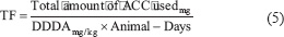 where N is the total number of animals treated. Antimicrobial treatment incidenceThe total number of antimicrobial treatments per 1,000 animals per day was calculated as DDDA per 1,000 animal days. DDDAs (i.e., milligrams of ACC recommended to be administered per animal per day) for products containing single or multiple ACCs were taken from the product containers or labels obtained from the trash can contents or by visiting the manufacturer’s website. For long-acting products (to be repeated after 48 hours), the DDDAs for each ACC were divided by two. For intermammary applicators, one applicator was accounted as a single DDDA (EMA, 2015; Firth et al., 2017; Umair et al., 2020) (Eqs. 4–6).