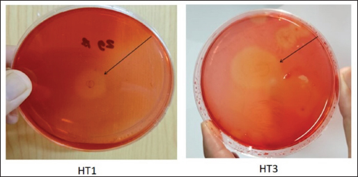 Fig. 3. Microscopic analysis of HT1 and HT3. isolates