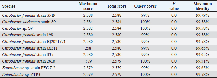 Table 3. BLAST results against NCBI database of HT1 isolate.