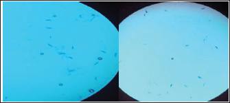Figure 4 shows two Petri dishes with dermatophyte colonies cultivated on DTM. LPCB and sticky tape were used to identify the isolates. Figure 5 shows Microsporum canis produces spindle-shaped macroconidia with thick walls and a knob at the terminal end based on the morphological description of the macroconidia shape mentioned. The results of the current study showed that the total infection rate of cat dermatophytosis was 47% (64 out of 136): the seasonal prevalence was found to be 39% in winter, while it was lower in autumn, with an infection prevalence of 12.5%. These are statistically non-significant results at p < 0.05, as shown in Table 1. The dermatophyte infection rate according to breed distribution in this study revealed the highest infection rate in crossbreeding (42.2%), while the lowest infection rate was in the local breed (3.1%) (Table 2). The prevalence of dermatophytes according to the sex of the animal showed a higher percentage in males (67.2%) than in females (32.8%) (Table 3). Depending on the age group of animals included in this study, the results illustrated that cats younger than 1 year had a higher infection rate (84.4%), whereas cats older than 1 year had a lower incidence rate (15.6%) (Table 4). Table 3. Distribution of positive dermatophyte cases according to sex.