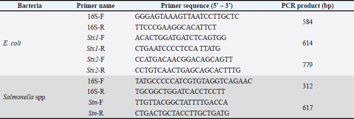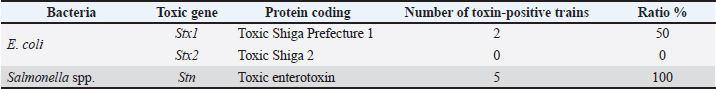 Table 2. PCR detection of toxin-encoding genes of E. coli and Salmonella spp.