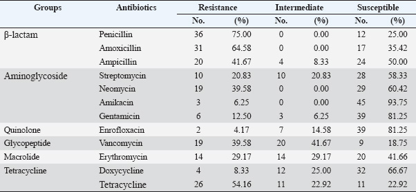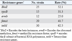 Table 6. Antimicrobial resistance genes prevalence among the S. aureus isolates (n=48).
