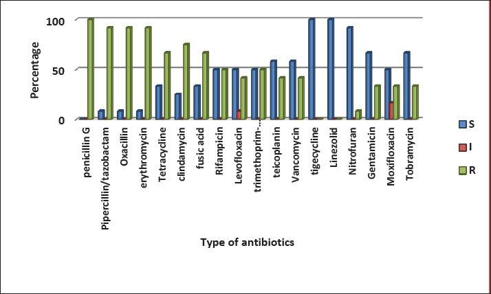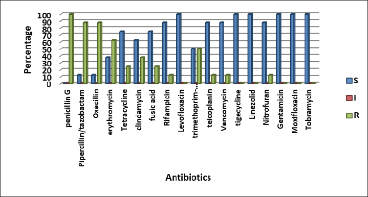 Fig. 4. Antimicrobials susceptibility test of S. aureus isolated from cattle with urinary tract infection.