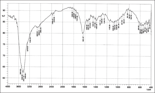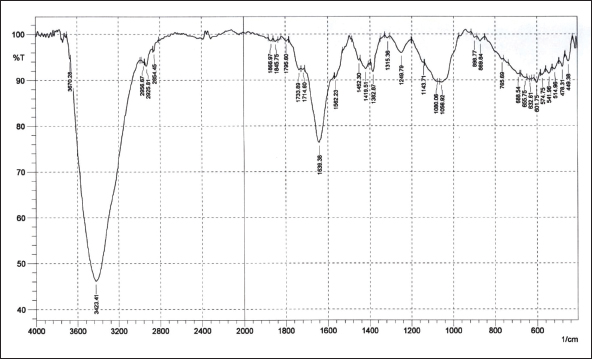 Fig. 2. FTIR spectra of chitosan nanoparticles, showing the main functional groups and changes in the chemical structure resulting from transformation into the nanoparticles.