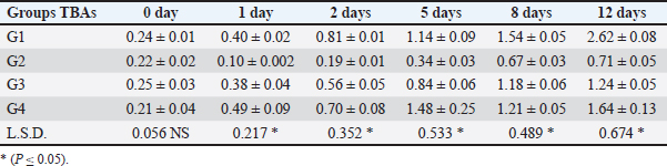 Table 3. TBA result of mutton meat at refrigerated temperature.