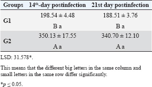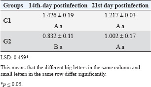 Table 2. Effect of rabbit groups and period in the result of IL-10 (pg/ml).