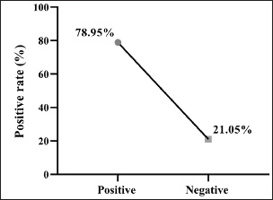 Fig. 3. Prevalence rate of colibacillosis using molecular PCR assay (total number of E. coli isolates examined=19).