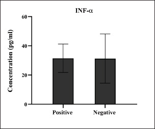 Fig. 11. Levels of immune INF-α marker among the positively (total number=19) and negatively (total number=108) infected dogs with colibacillosis; non-significance (p < 0.0935).