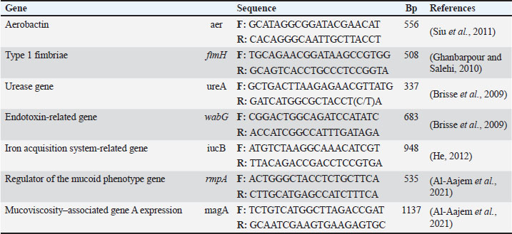 Table 9. Virulence gene in K. pneumoniae isolates.