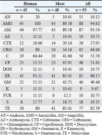 Table 10. Virulence gene pattern in K. pneumoniae isolates from clinical sources and meat from the market.