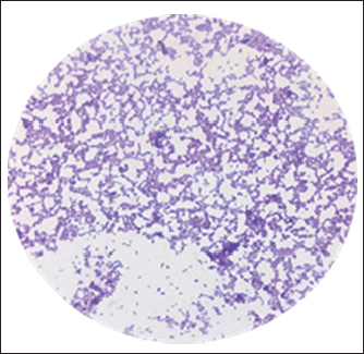 Fig. 3. Gram stain Lactobacillus spp., long rods shaped bacilli under 100X (Oil immersion). Antifungal profile for C. albicans