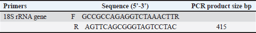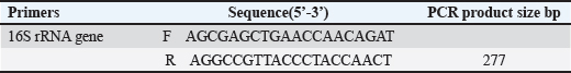 Isolation of Lactobacillus acidophilusFifty sheep milk samples were collected from ovine agricultural areas in Bartella, Mosul Governorate. To isolate L. acidophilus, 1 ml of the sample was aseptically combined with 9 ml of sterile distilled water for 1–3 minutes. Serial dilutions (10-¹ to 10-6) were prepared for each specimen. 1 ml from the right dilution was placed on DeMan Rogosa and Sharpe (MRS) agar De and kept at 37°C in an anaerobic culture jar for 48 hours. Small and pure white colonies (2–3 mm wide) with smooth edges were selected and sub cultured on to a new MRS agar plate (Jørgensen et al., 2017). Identification of L. acidophilusLactobacillus acidophilus was identified based on its morphological, cultural, and biochemical properties (Jørgensen et al., 2017). Lactobacillus acidophilus confirmation by PCR assayWe used standard PCR to amplify the 16S universal primer (16S_uni) targeting a 277 bp area with five spacers (1–5). The amplification conditions are listed in Tables 3 and 4, respectively, according to (Khalil et al., 2019; Khalil, 2021). Table 3. Primer sets for Lactobacillus acidophilus species.