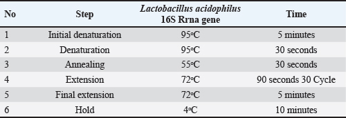 Table 4. Amplification conditions for Lactobacillus acidophilus species.