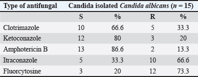 Fig. 5. Antifungal sensitivity pattern for C. albicans. Table 5. Antifungal profile of Candida albicans.