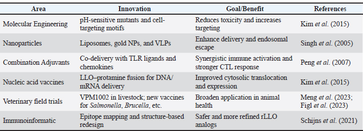 Shihab TJ, Yousif EH. Recombinant listeriolysin-O as a platform for next-generation vaccines: Mechanisms, immunological evidence, and translational applications in human and veterinary medicine. Open Vet. J.. 2026; 16(3): 1402-1425. doi:10.5455/OVJ.2026.v16.i3.1