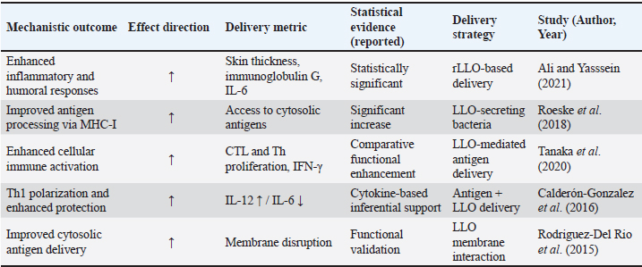 Table 7. Functional and mechanistic evidence supporting rLLO-mediated antigen delivery systems.