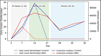 Fig. 2. Daily mortality and total leukocyte count evolution in broilers.