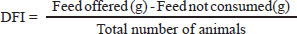 DFI: daily feed intake BWG=FBW (g)-IBW(g) BWG: Body weight gain; IBW: Initial body weight; FBW: Final body weight.