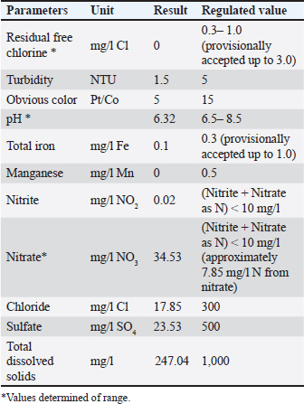 Table 2. Physical and chemical parameters of the drinking water samples.