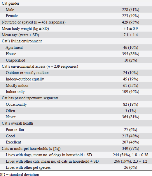 Table 3. Demographic profile of cats reported by owners surveyed in the US.