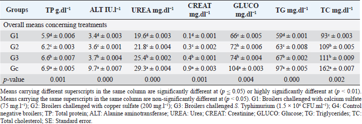 Table 4. Biochemical profile (Mean ± SE) in different groups supplied with E. crassipes (1 g.l-1) treated water.