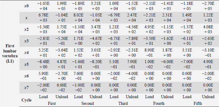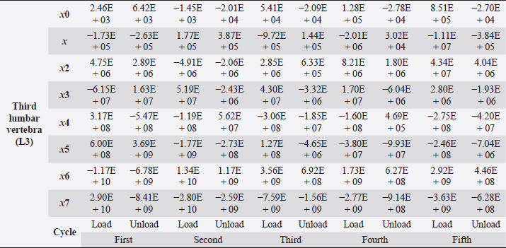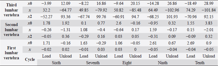 Table 5. Second lumbar vertebra coefficients using seventh-order polynomials.